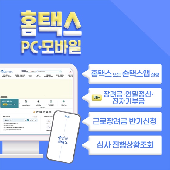 · (홈택스 PC·모바일) 홈택스 또는 손택스앱 실행 → 메뉴 장려금·연말정산·전자기부금 → 근로장려금 반기신청 → 심사 진행상황조회