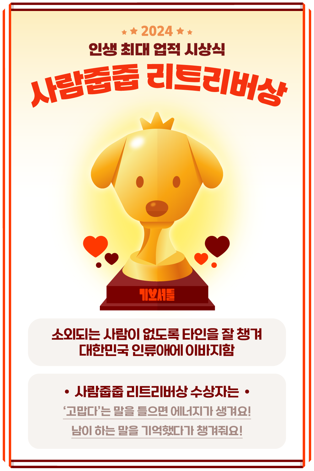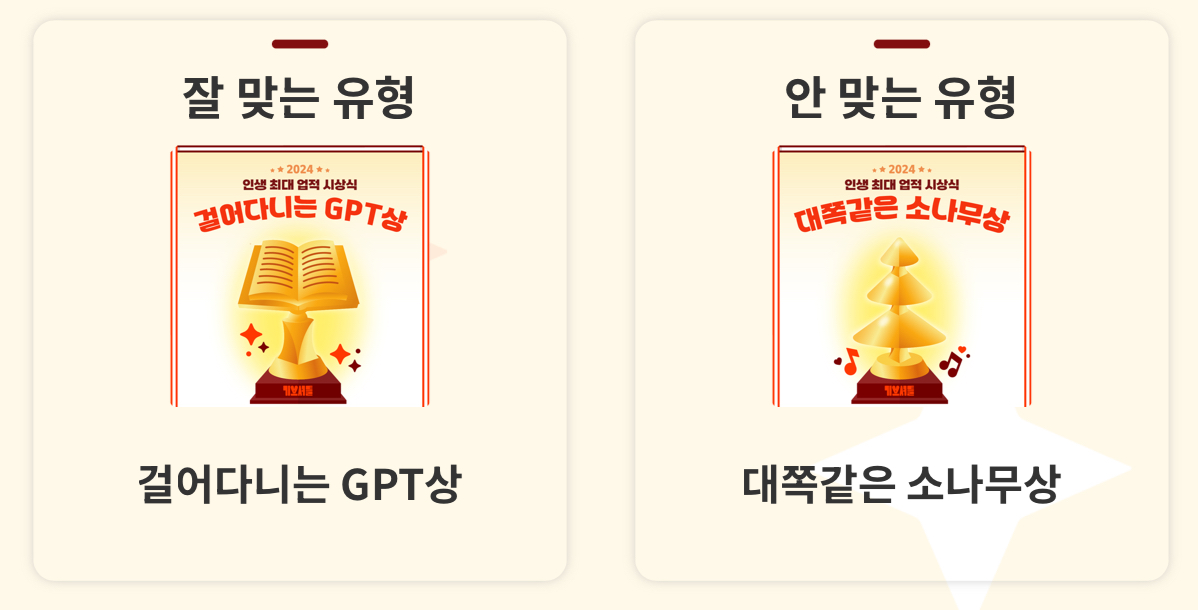 나의 2024년은 어땠는지 알아보는 방구석연구소에서 나온 ‘2024 인생 최대 업적 시상식 테스트’을 지금 바로 소개드리겠습니다.
