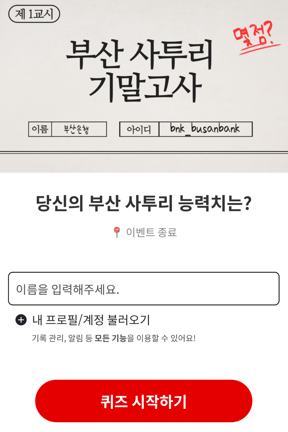 부산 사투리 기말고사 능력치 테스트 링크 바로가기