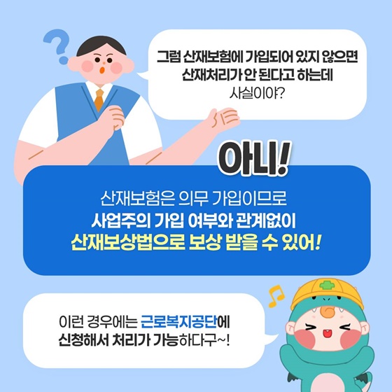 Q. 산재보험에 가입되어 있지 않으면 산재처리가 안 된다고 하는데 사실인가요?