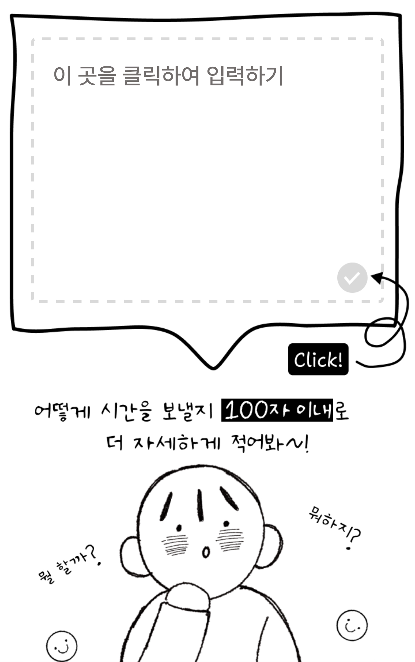 2개의 문제를 푸시고 어떻게 시간을 보낼지 100자 이내로 더 자세하게 적어보시길 바랍니다.