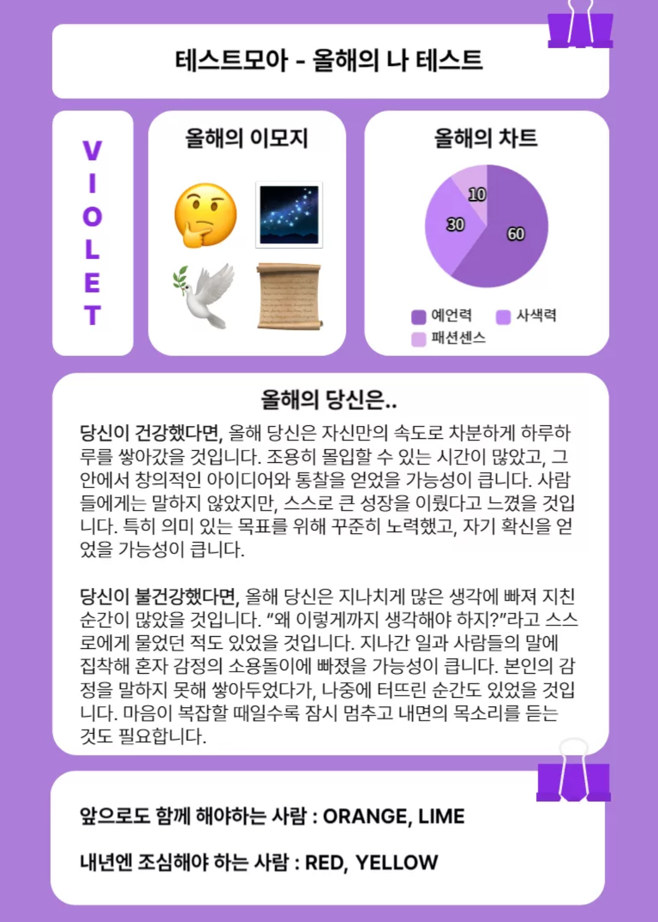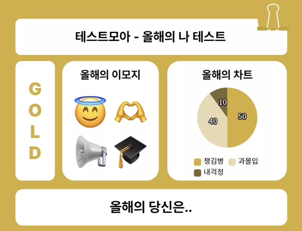 올해의 나는 어떤지 알아보는 테스트모아에서 ‘올해의 나 테스트’라고 나왔는데 여러분들께 소개드리겠습니다.