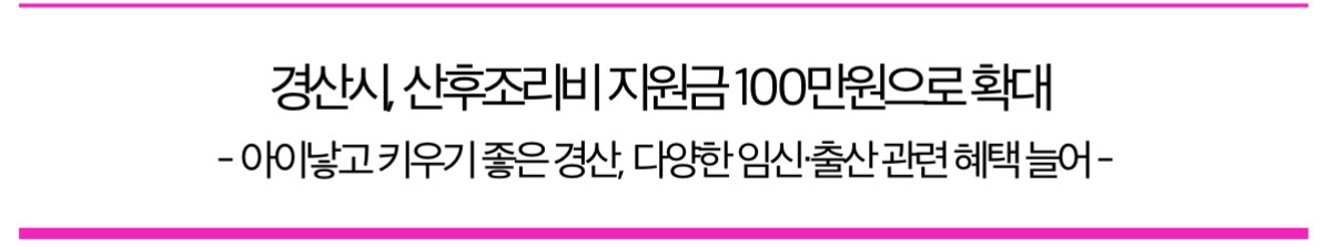 경산시(시장 조현일)는 2025년 1월 1일 이후 출생아부터 산후조리비 지원금을 출산 가정당 최대 100만 원으로 확대한다고 밝혔습니다.