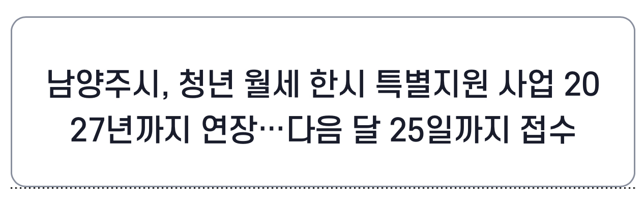 남양주시는 ‘청년 월세 한시 특별지원’ 사업이 2027년도까지 연장 운영한다고 합니다.