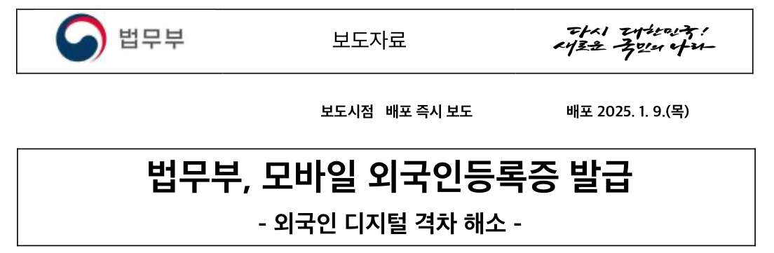 본 설명은 법무부 보도자료 출처를 바탕으로 작성되었으며 법무부는 체류 외국인의 디지털 차별 방지와 보다 편리한 생활환경 마련을 위해 지속적으로 노력하겠다고 밝혔습니다.