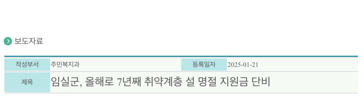 임실군이 2025년 올해로 7년째 명절을 앞두고 취약계층을 대상으로 한 ‘명절 지원금’을 전달한다고 합니다.
