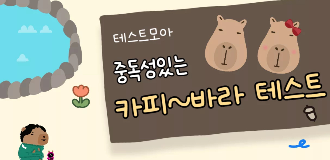 테스트모아라는 사이트에서 요즘 인기 있는 동물인 카피바라로 테스트를 만들었는데 여러분들께 안내드리고자 합니다.
