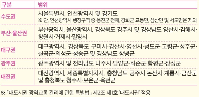 ① 대도시권역: 대학 소재지가 속한 특별시·광역시 기준, 권역별로 범위 설정