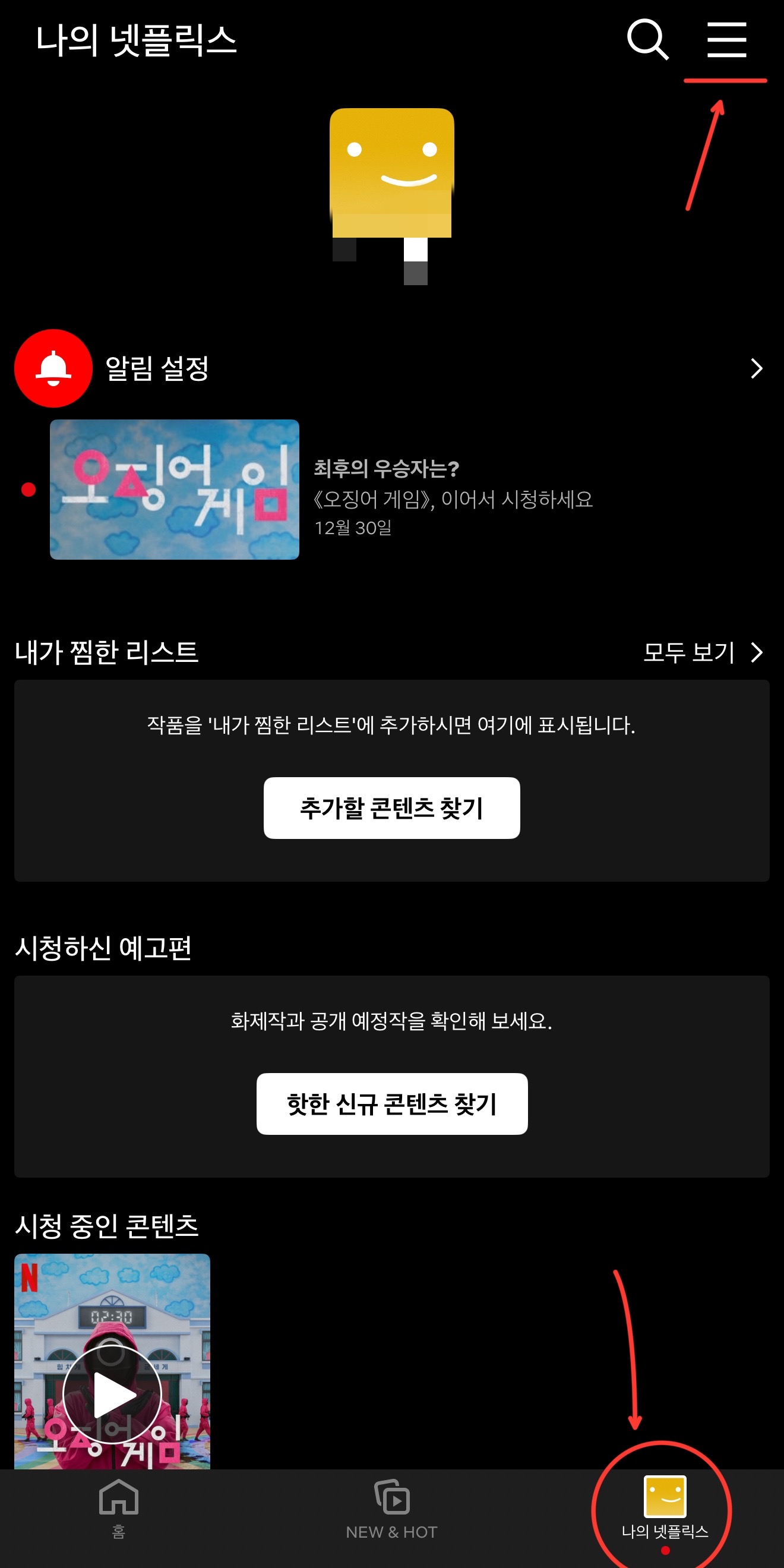 2. 하단의 ‘나의 넷플릭스’ 클릭 후 상단의 메뉴 클릭