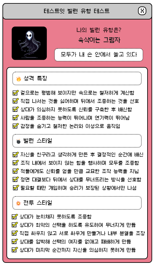 테스트잇에 나온 빌런 유형 테스트를 소개드리겠습니다.