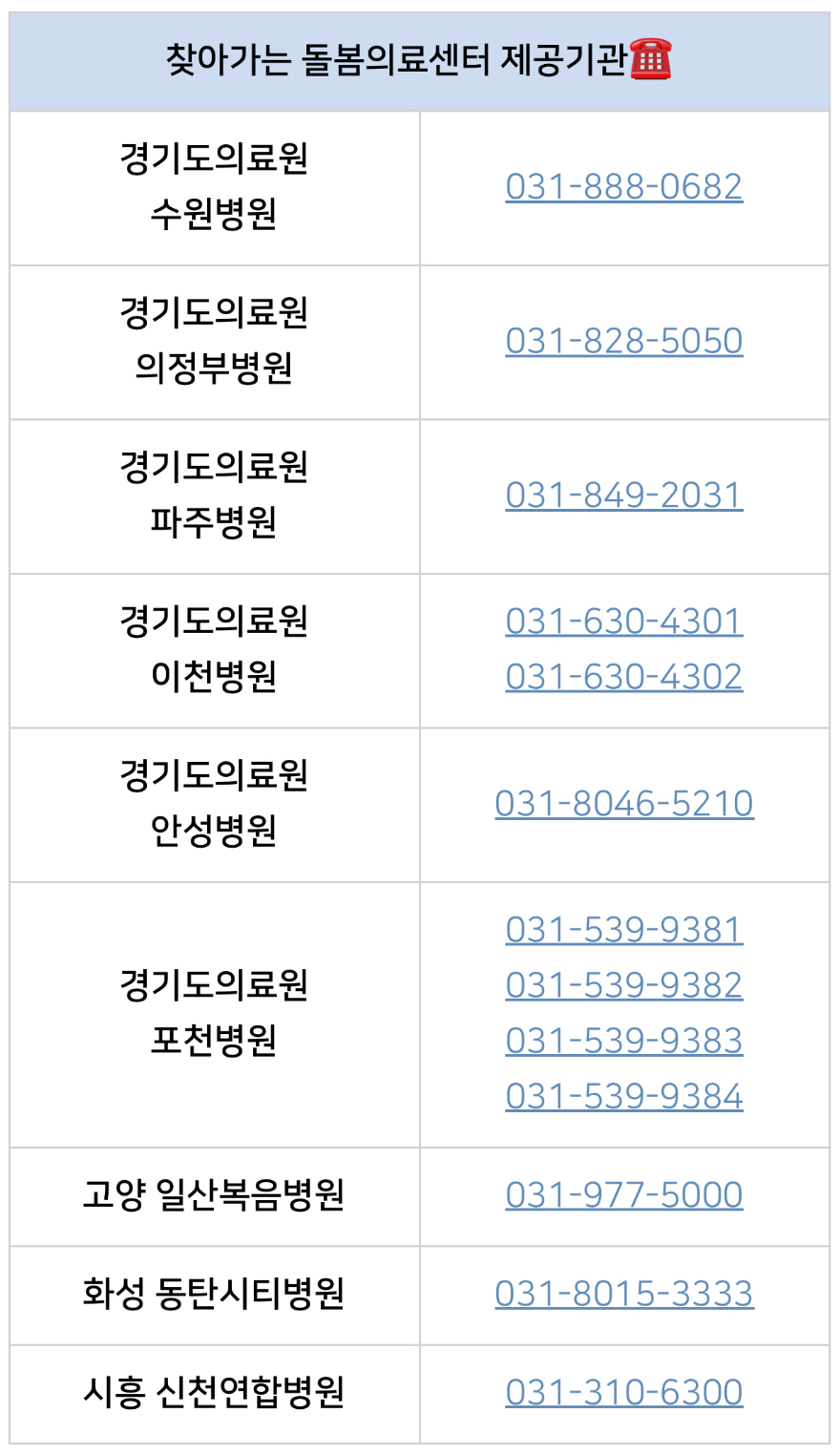 경기도의료원 포천병원 031-539-9381, 031-539-9382, 031-539-9383, 031-539-9384