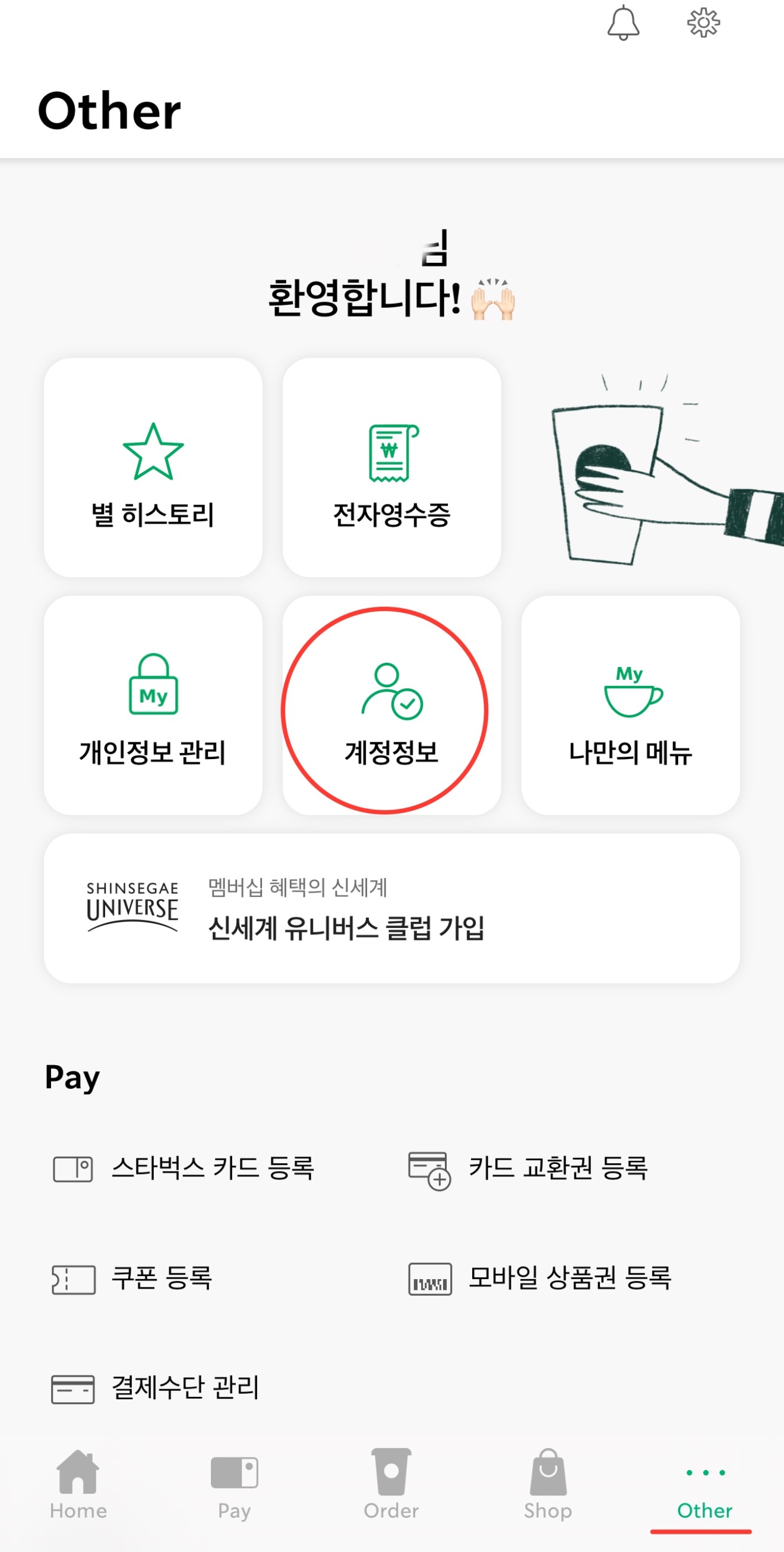 2. 하단의 Other 클릭 후 계정정보를 클릭 하세요.