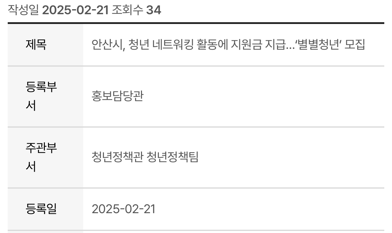 2025년 올해로 5년째 운영하는 ‘별별청년’은 안산시에 생활권(거주, 일, 학교, 활동 등)을 둔 청년(19세~39세) 3인 이상으로 구성된 모임을 대상으로 한다고 합니다.