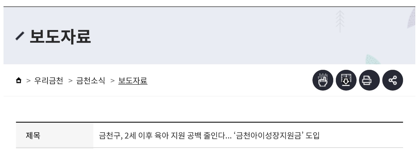 현재 2세 이하 자녀를 양육하는 가정에는 ‘첫만남이용권’, ‘부모급여’ 등 정부 지원이 제공되지만, 2세 이후부터는 지원이 줄어 양육 가정의 경제적 부담이 커지는 실정이라는데 이에 금천구는 영유아의 건강한 성장과 안정적인 양육 환경을 조성하고, 2세 이후 양육 부담을 완화하기 위해 ‘금천아이성장지원금’을 신설했다고 밝혔습니다.