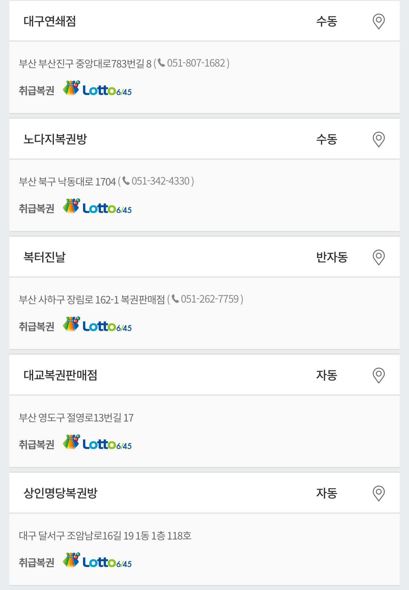 부산 사하구 장림로 162-1 복권판매점 ( 051-262-7759 )