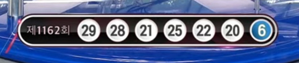제1162회 로또복권 추첨에서 '20, 21, 22, 25, 28, 29'번