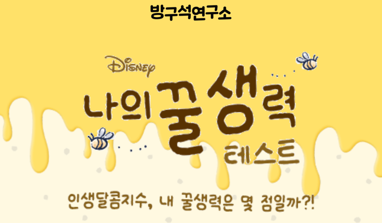 인생달콤지수, 내 꿀생력은 몇 점일지 알아보는 방구석연구소에서 나온 ‘나의 꿀생력 테스트’를 소개드리겠습니다.