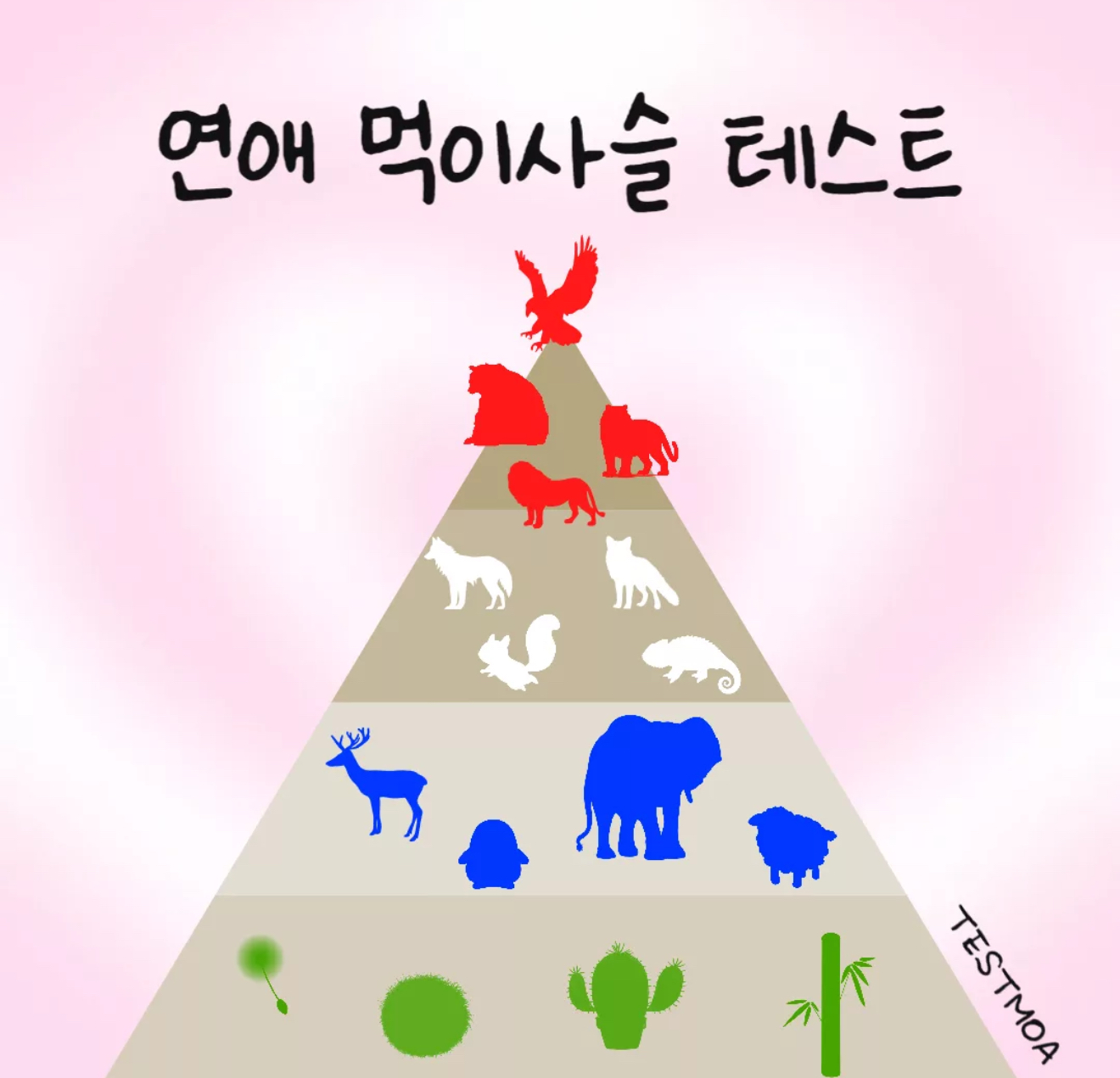 테스트모아라는 다양한 재밌는 테스트가 올라오는 사이트에서 ‘연애 먹이사슬 테스트’라고 나왔는데 여러분들께 소개해 드리겠습니다.