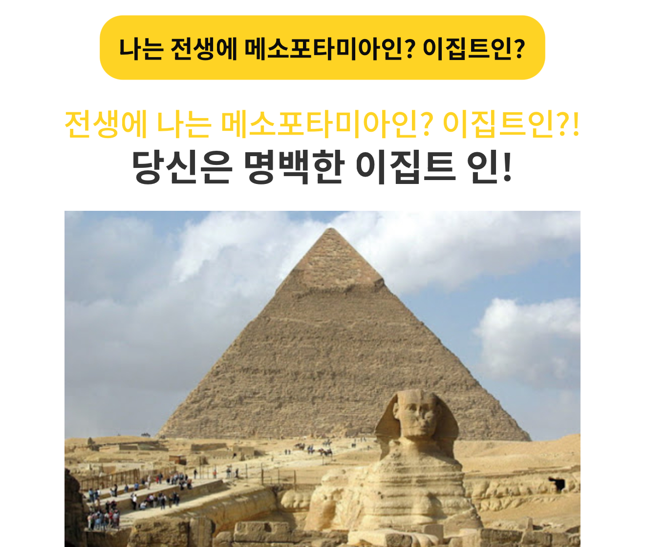 나는 전생에 메소포타미아 문명에 가까운지 아니면 이집트 문명에 가까운지 나의 성향을 알아보는 테스트를 소개드리겠습니다.