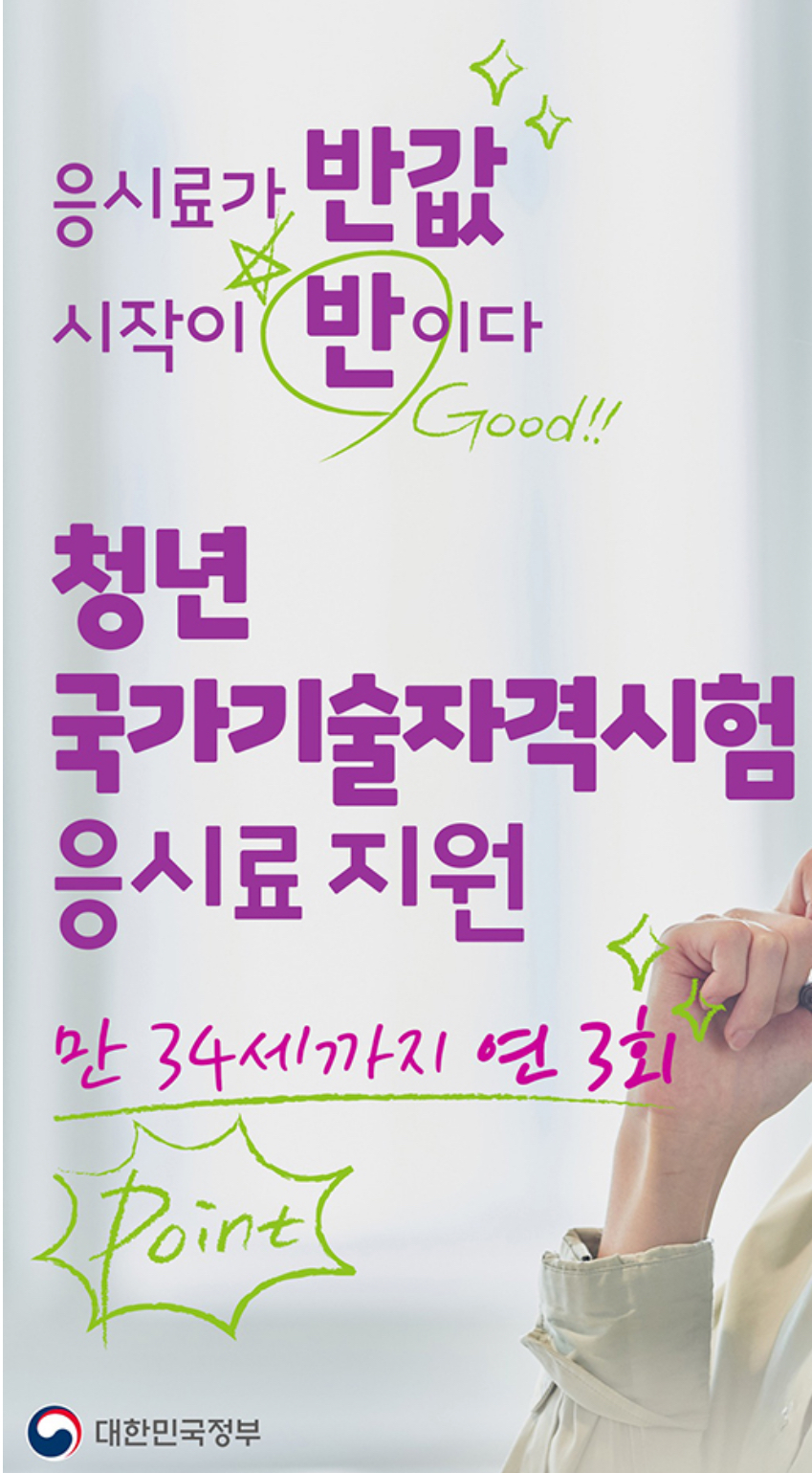 '청년 국가기술자격시험 응시료 지원사업' 통해 할인받고 응시하시길 바랍니다.