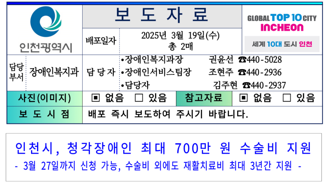 본 설명은 인천광역시 보도자료 안내로 작성하였으며 보다 자세한 안내는 해당 문의처를 통해서 문의에 대한 도움을 받아보시길 바랍니다.