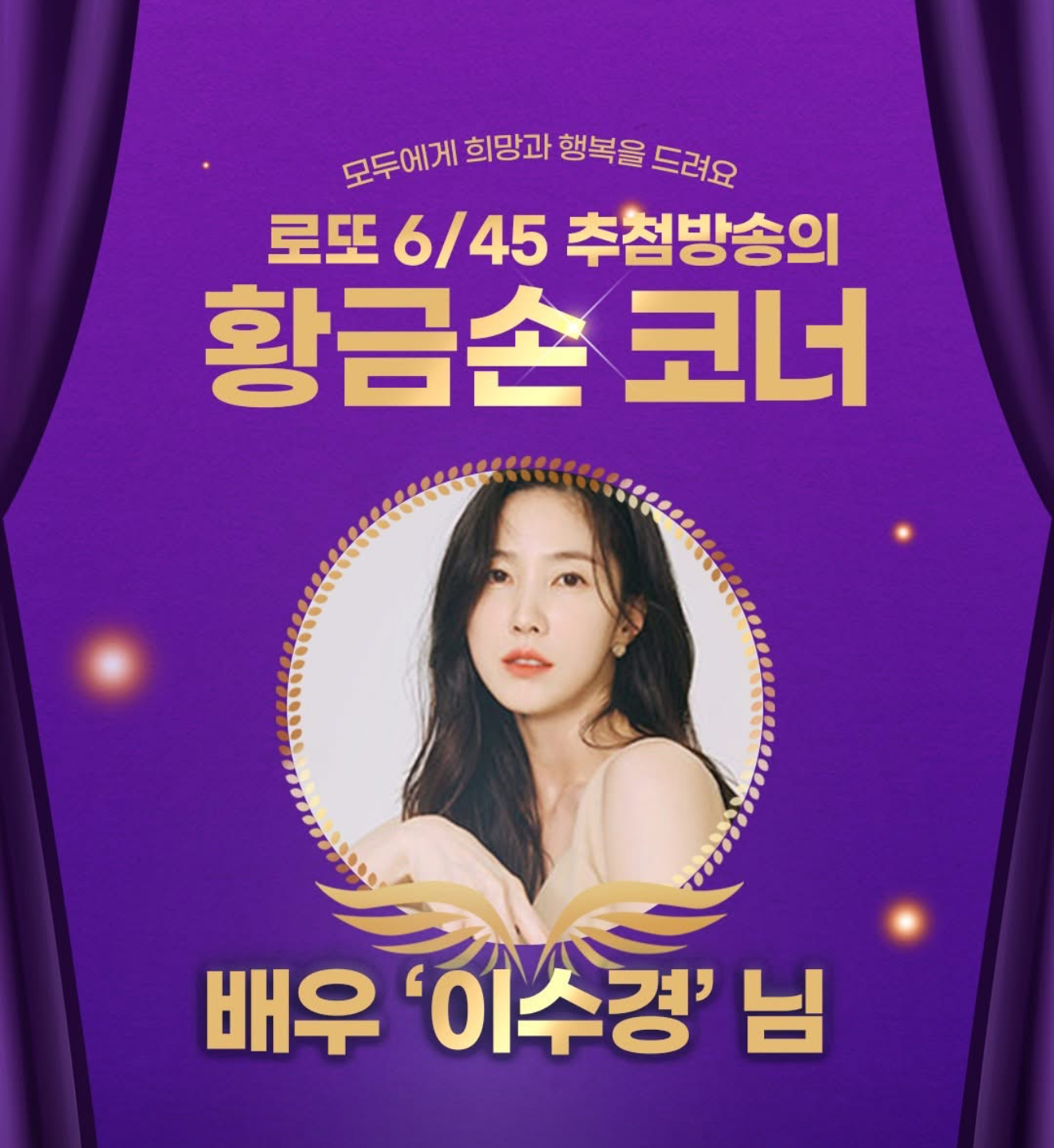 2025년 3월 마지막 추첨일인 이날 꾸밈없는 매력과 따뜻한 나눔으로 사랑받는 배우 이수경이 제330대 ‘황금손’으로 초대됐다고 합니다.