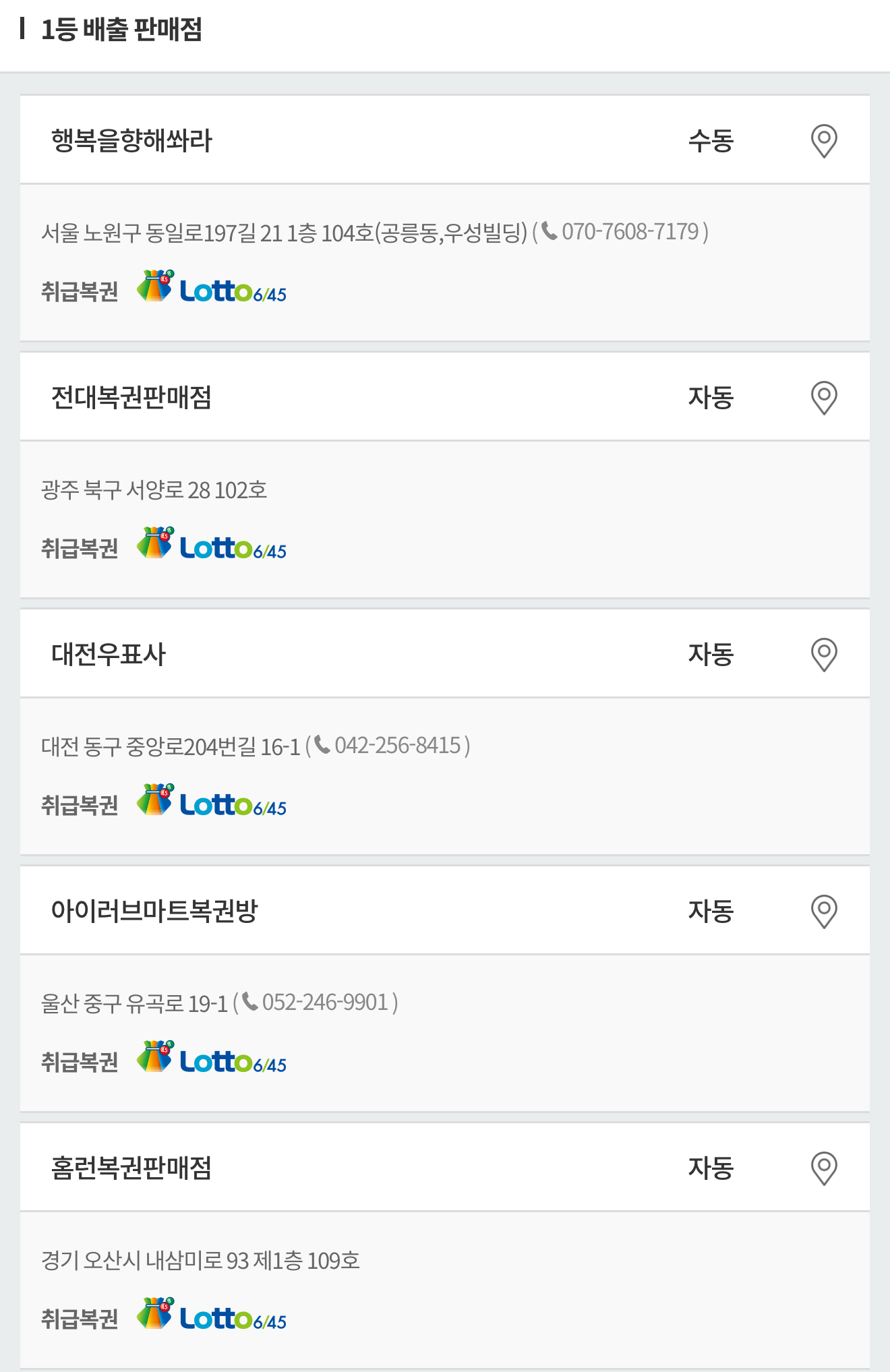 로또 2등과 3등은 지역 농협은행 각 지점에서(농협 중앙회 기준)