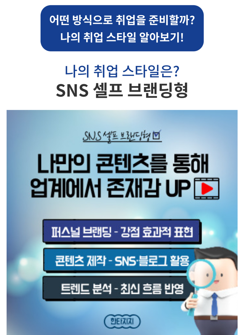 나의 취업 스타일 알아보는 ‘취업 스타일 테스트’를 소개드리겠습니다.
