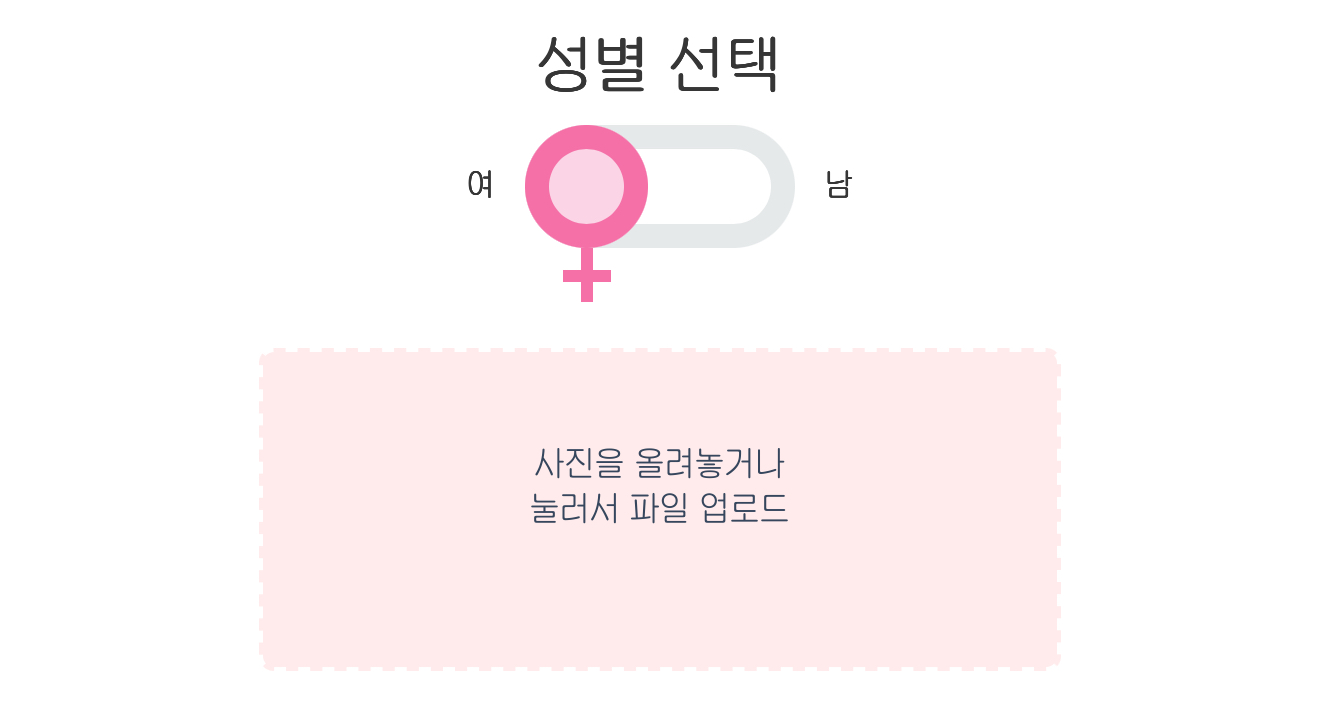 우선 성별 선택 남자, 여자 중에서 골라주세요