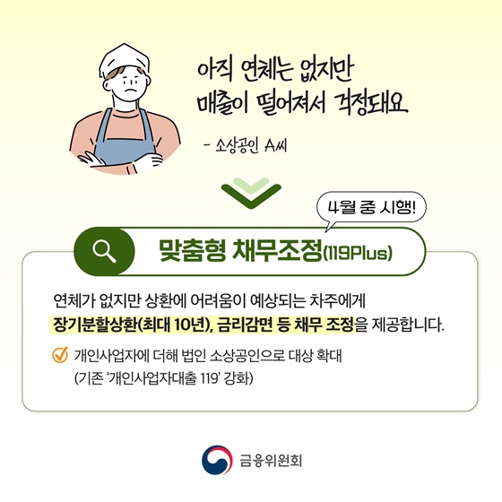 · 개인사업자에 더해 법인 소상공인으로 대상 확대(기존 '개인사업자대출 119' 강화)