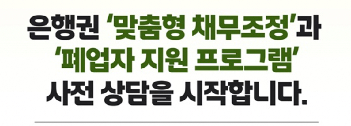 은행권 '맞춤형 채무조정'과 '폐업자 지원 프로그램' 사전상담을 시작합니다.