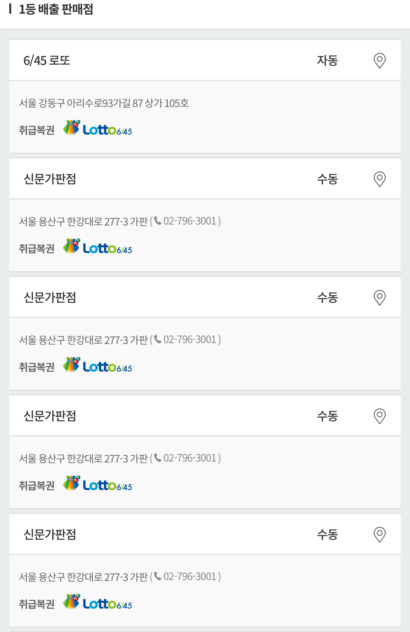 일등로또복권 판매점