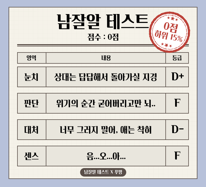 남잘알 테스트는 0점이 나왔습니다.
