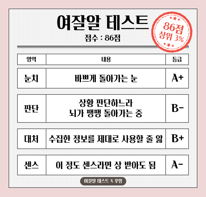 여잘알 테스트는 86점