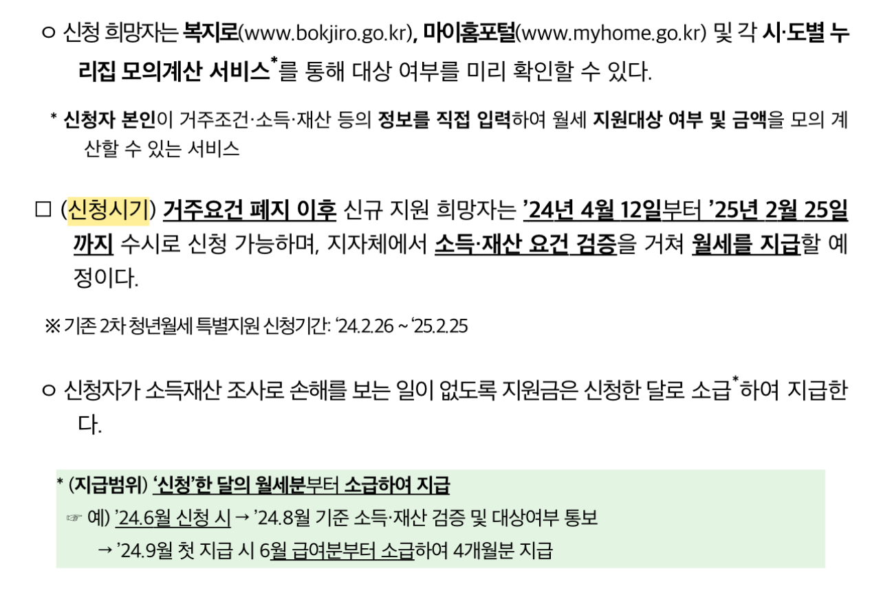거주요건 폐지를 반영한 신청기간은 2024년 4월 12일부터 내년 2025년 2월 25일까지입니다.