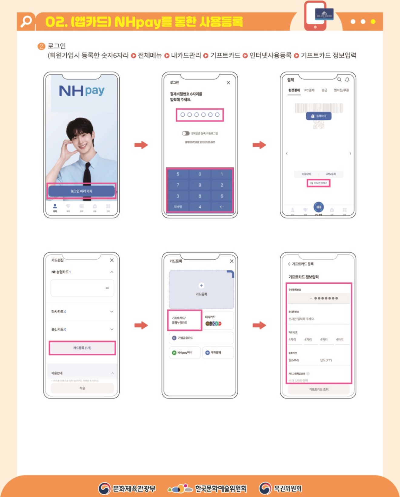 ② NH페이 로그인 > 카드편집하기 > 카드등록> 기프트카드/문화누리카드 등록