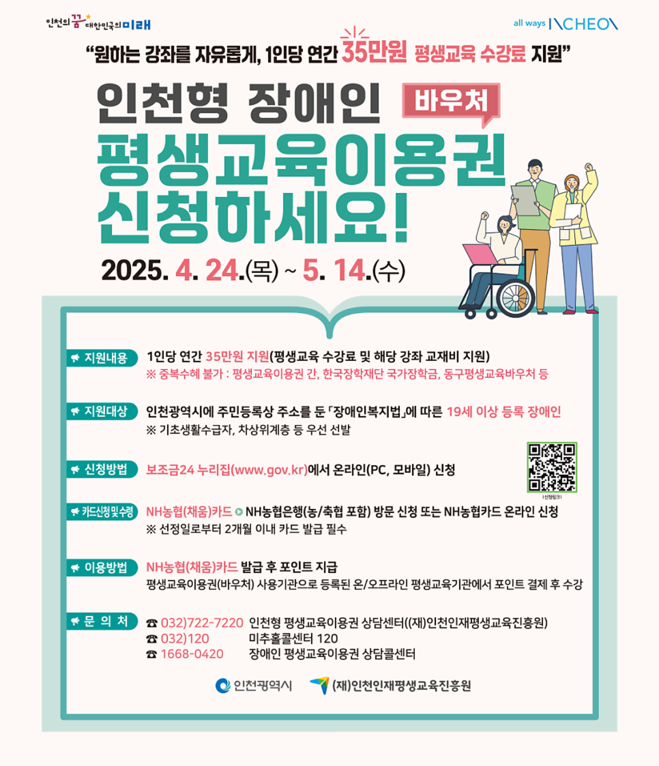 ➡️4인천형 장애인 평생교육이용권(https://www.gov.kr/portal/main/nologin)