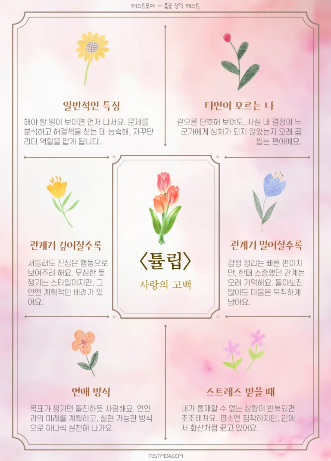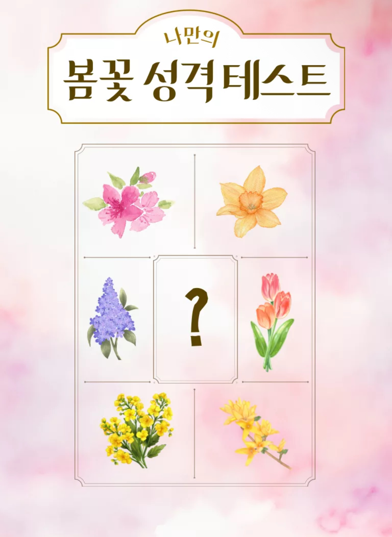 테스트모아라는 사이트에서 ‘봄꽃 성격 테스트’라고 나왔는데 여러분들께 소개드리겠습니다.