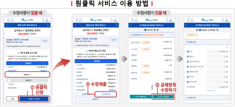 - [종합소득세 원클릭 환급] - 본인인증 - 환급금 확인