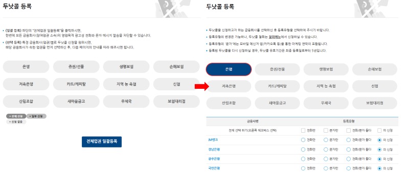원치 않는 전화를 직접 차단할 수도 있지만 많은 전화번호를 일일이 다 차단하거나 금융권마다 차단 신청을 하는 것은 번거로운 일인데 두낫콜 시스템을 통해 모든 금융회사의 영업 목적 전화와 문자를 한 번에 차단할 수 있습니다.