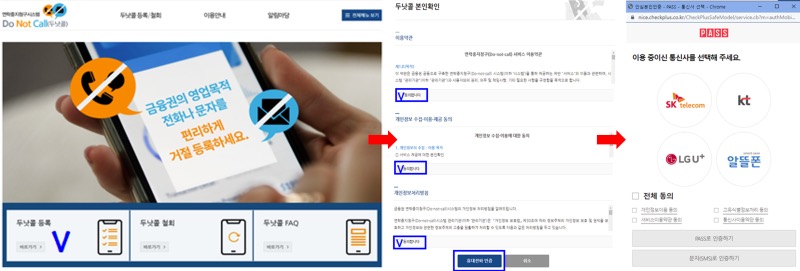 두낫콜 누리집에서 휴대전화 인증 후 원하는 차단 서비스를 신청할 수 있습니다.
