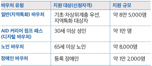 · 4가지 바우처 유형, 총 11만 5,000여 명 대상(장애인 1만 2,000명 포함)