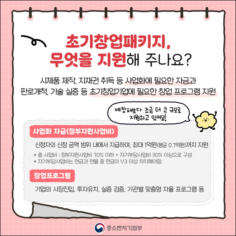 본 설명은 중소벤처기업부 출처를 안내로 작성되었으며 중소벤처기업부에서는 보다 유망한 창업기업을 발굴·육성하고 고용 및 매출 창출 등 가시적인 성과가 나타날 수 있도록 지속적으로 지원해 나가겠다고 밝혔습니다