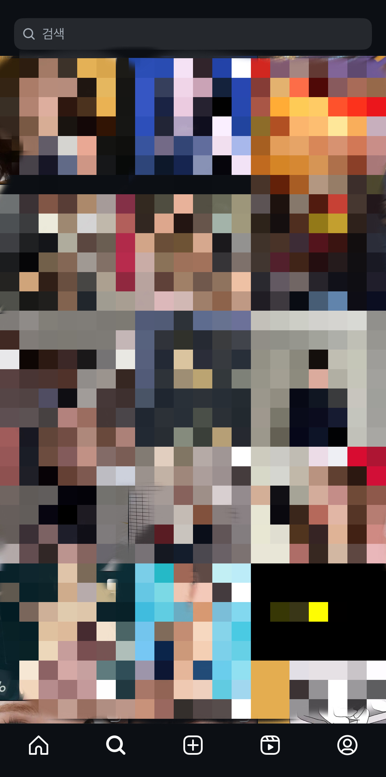 인스타그램 검색창(돋보기)을 눌렀을 때 보이는 추천 게시물은 사용자의 활동 데이터를 바탕으로 알고리즘이 자동으로 선택한 콘텐츠입니다.