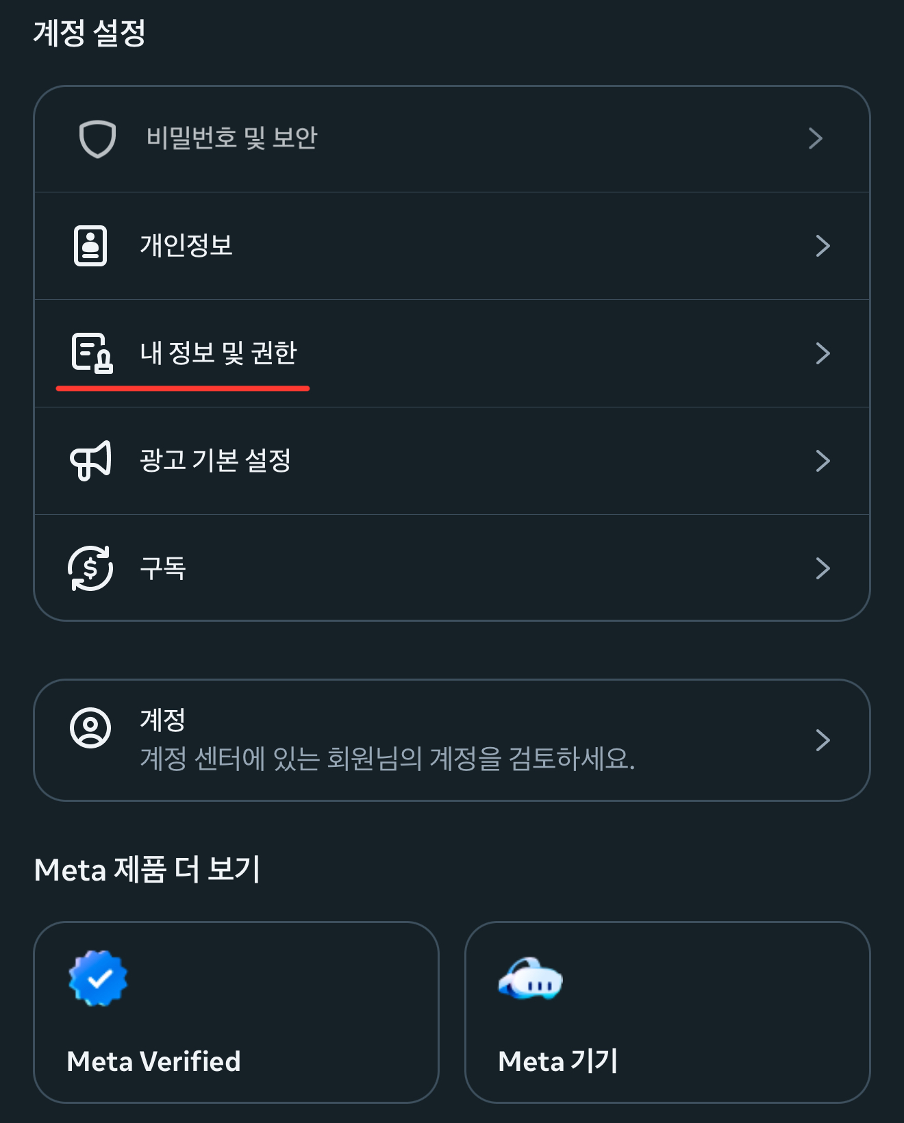 4. 계정센터 클릭