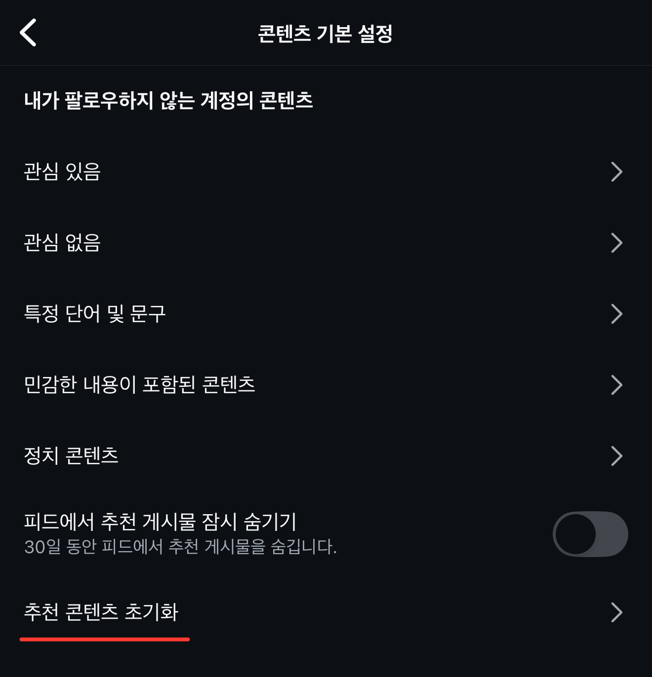 [추천 콘텐츠 초기화]