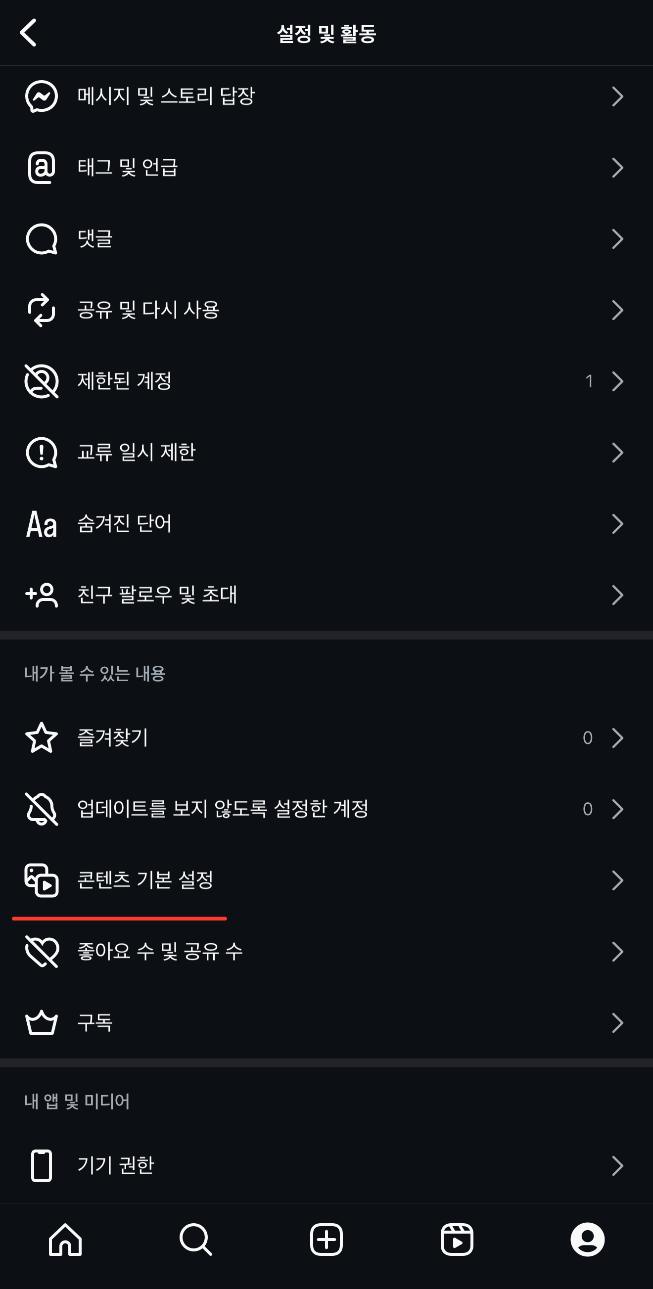✔️콘텐츠 기본 설정 클릭