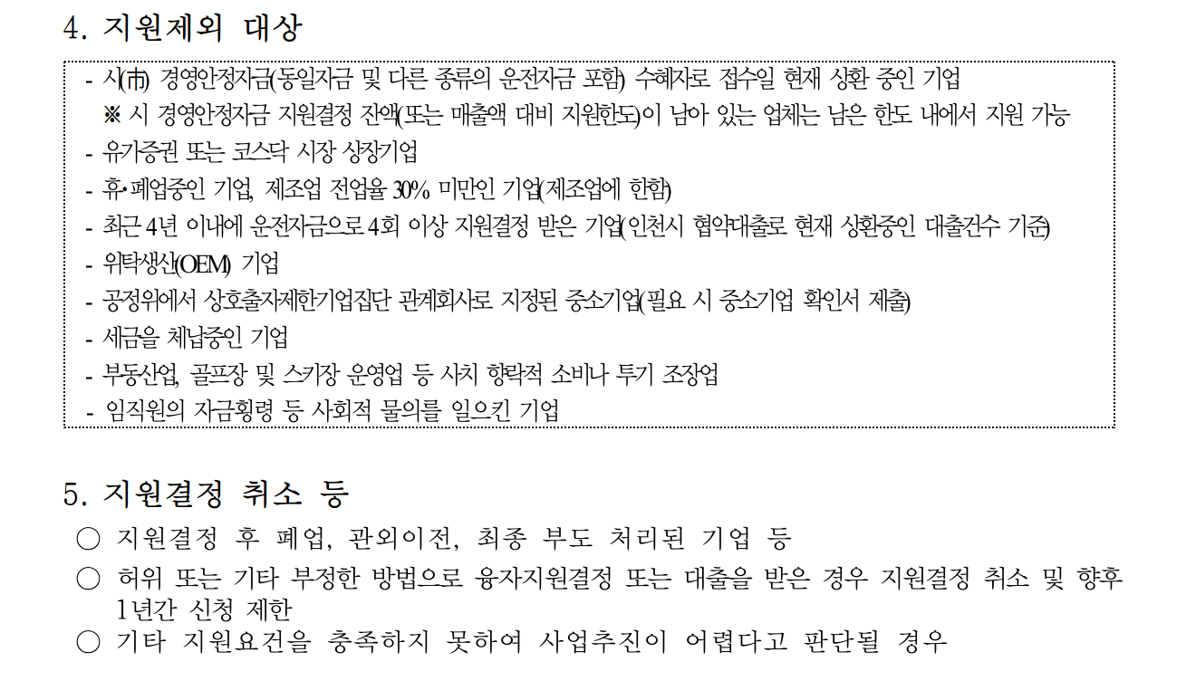 인천시는 지난해 지역 중소기업의 금융비용 부담을 완화하기 위한 특별자금 사업을 추진한 바 있는데 2024년 1월에는 NH농협은행 등과 협력해 특별자금을 지원했고 2024년 6월에는 ㈜신한은행이 출연한 중소기업 이자차액보전사업비 10억 원을 활용해 ‘인천형 특별 경영안정자금’ 2,000억 원 규모를 협조 융자 방식으로 지원했다고 합니다.