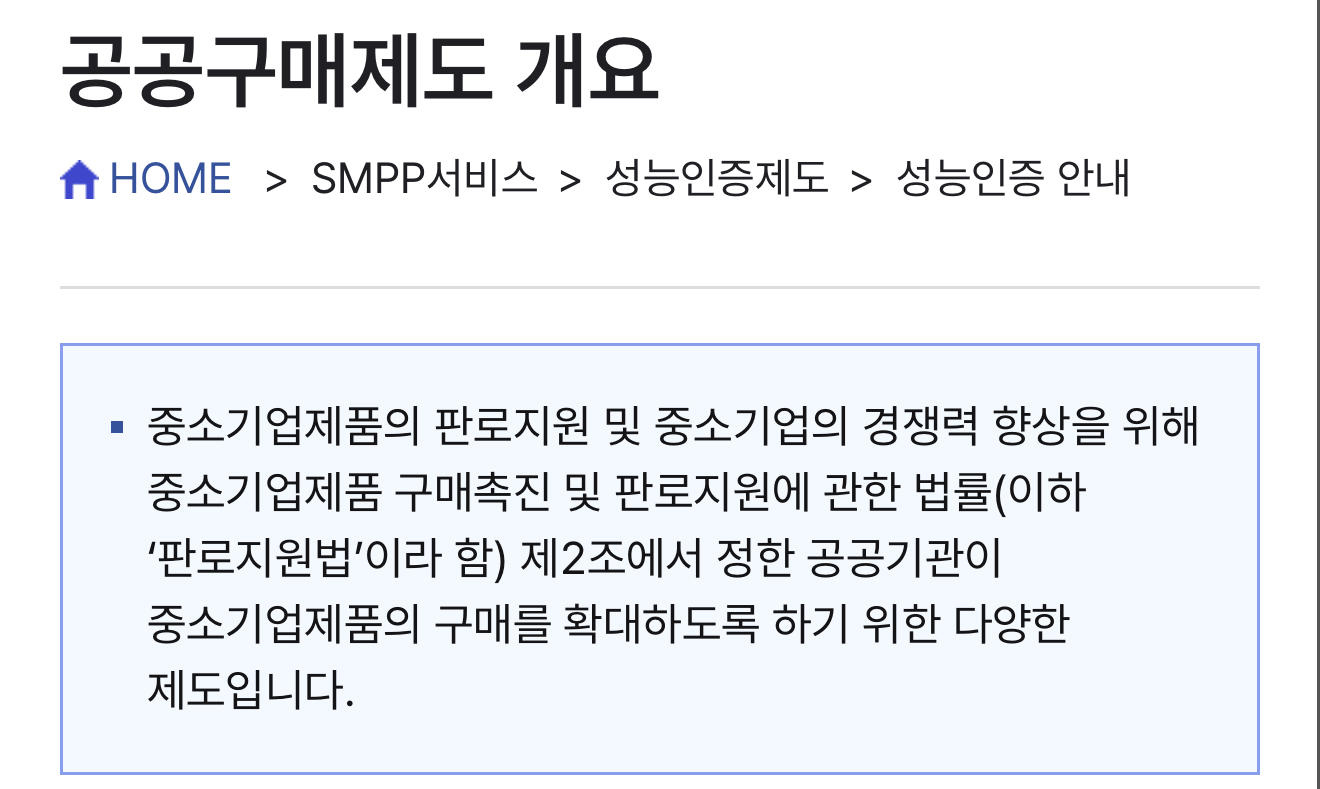 보다 자세한 내용 정보 확인은 중소기업제품 공공구매 종합정보망 페이지(www.smpp.go.kr)를 통해 확인 가능하니 참고해보시길 바랍니다.