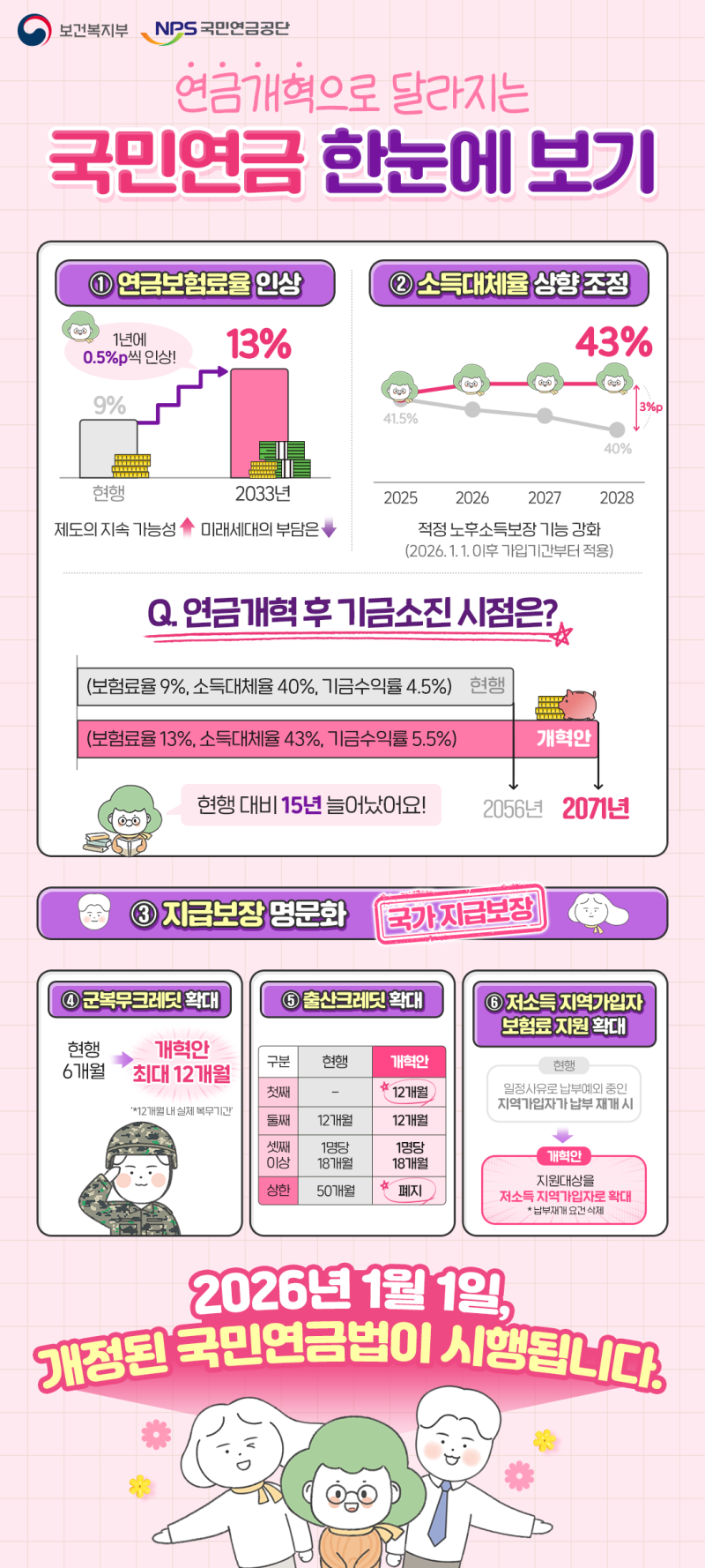 이렇게 2026년 1월 1일부터 개정된 국민연금법이 시행될 예정인데 국민연금공단에 따르면 국민 여러분의 많은 관심 부탁드린다고 밝혔습니다.
